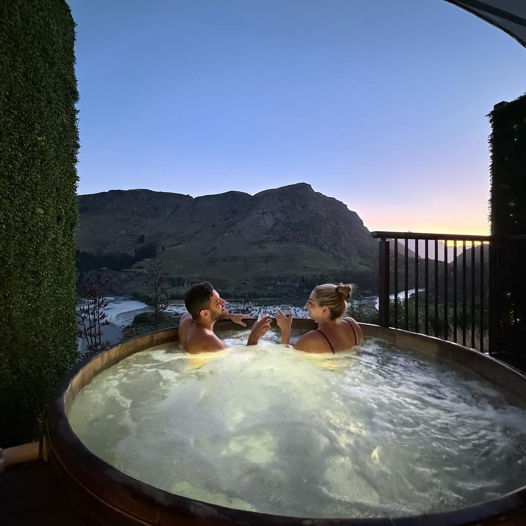 Onsen Hot Pools is a popular hot spring experience in Queenstown, South Island, New Zealand. It is located on a steep cliff overlooking the magnificent Shotover River Canyon. This place is famous for its highly private Japanese style wooden barrel hot springs and unbeatable mountain views, making it an excellent place to relax and take photos!